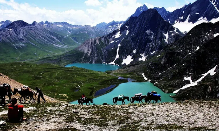 • For those seeking a more off-the-beaten-path adventure, Vishansar Lake is a pristine alpine lake located about 13 kilometers from Sonamarg. Set against the backdrop of towering peaks, the lake is surrounded by lush meadows, making it a stunning spot for photography and nature walks. The trek to Vishansar Lake is challenging but offers rewarding views of the untouched beauty of Kashmir’s landscapes. It's an ideal destination for trekkers looking for an unforgettable experience.